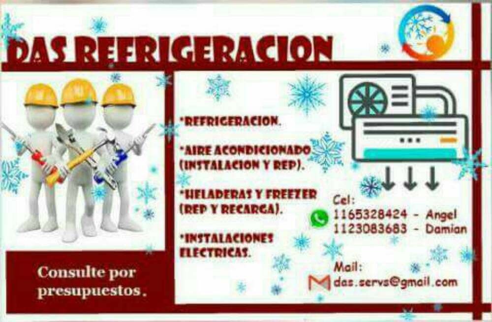 Realizamos instalaciones y reparaciones de aires acondicionados, heladeras, cambios de compresores recargas. tenemos una extensa experiencia más de diez años en mantenimiento de locales, comprobable. realizando instalaciones eléctricas nuevas, arreglos,